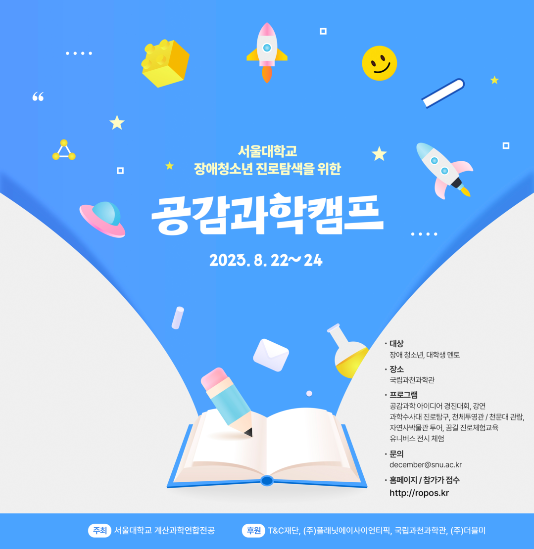 2023년 캠프는 T&C재단과 플래닛에이사이언티픽, 국립과천과학관, 더블미가 후원하며, 참가비용은 전액 무료다.