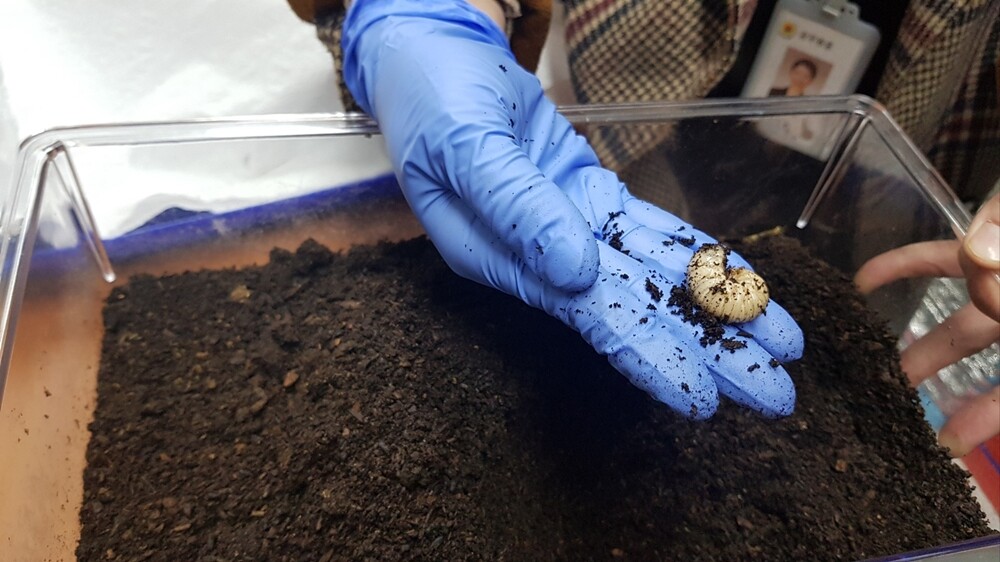 전남대 김두운 교수가 산업 곤충의 질병을 예방하고 피해를 최소화하는 천연 소재 개발에 성공했다. 사진은 장수풍뎅이 유충이다. 사진=전남대 제공 |