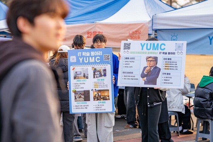 [대학저널 온종림 기자] “26학번 새내기 여러분! 동아리 가입하고, 즐거운 캠퍼스 추억 만들어요!” 영남대학교 총동아리연합회가 11일부터 12일까지 이틀간 캠퍼스 천마로에서 ‘2026 동아리 박람회’를 개최했다. 이번 박람회에서는 영남대 중앙동아리 소속의 교양, 체육, 봉사, 학술, 어학, 응용학술, 예술, 종교 등 8개 분과 66개 동아리가 참여해 신입생과 재학생을 대상으로 동아리 회원 모집 활동을 펼쳤다. 이밖에도 박람회 기간 중, 밴드 동아리, 통기타 동아리, 댄스 동아리, 전통연희패 동아리, 천마응원단 등 동아리 선배들의 버스킹 공연도 열려 축제의 분위기를 더했다.