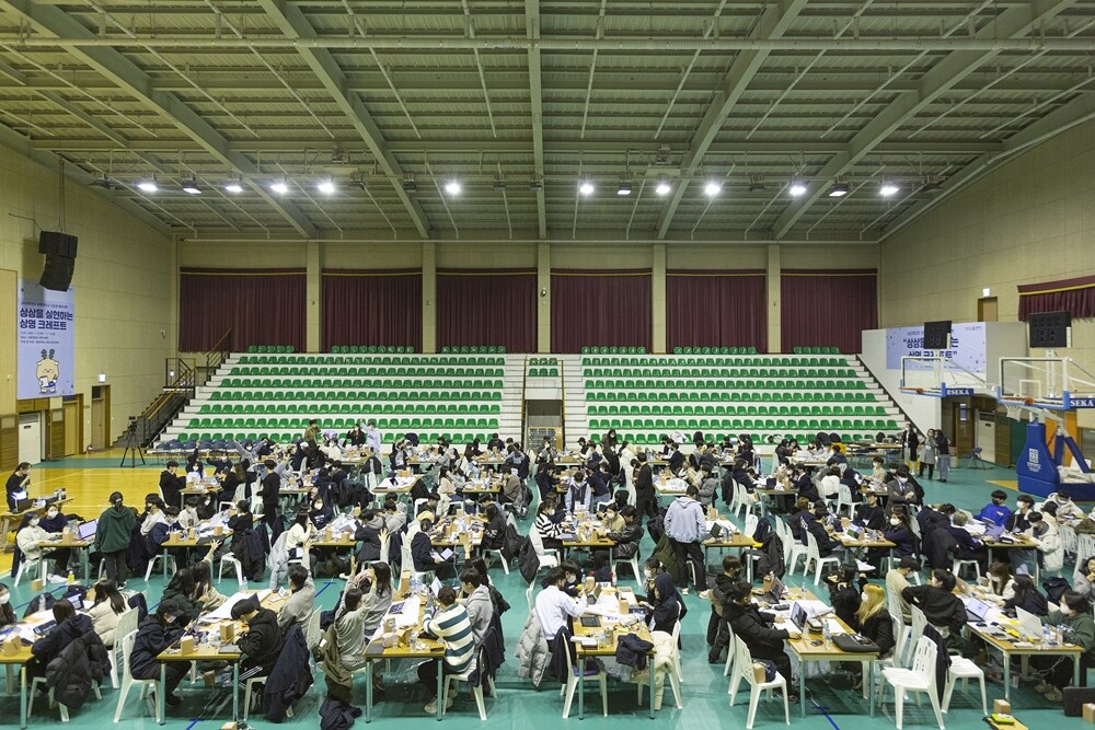 수시모집에 합격해 입학을 앞둔 서울과 천안 캠퍼스 예비 신입생 200여 명을 대상으로 한 이번 예비대학의 주제는 ‘상상을 실현하는 상명 크레프트’. 예비 신입생들은 1박 2일간 대학 수련원에서 함께 생활하며 ▲대학 소개 ▲동아리 공연 ▲교원 특강 ▲해커톤 ▲교양교육 과정 안내 등 대학 생활 조기 적응을 위한 15시간의 프로그램을 통해 대학생으로서의 역량을 키웠다.