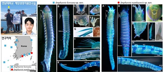 전남대 김종래 학생연구원이 한반도 주변해역에서 신종 갯지렁이 3종을 최초 보고했다. 사진=전남대 제공 |