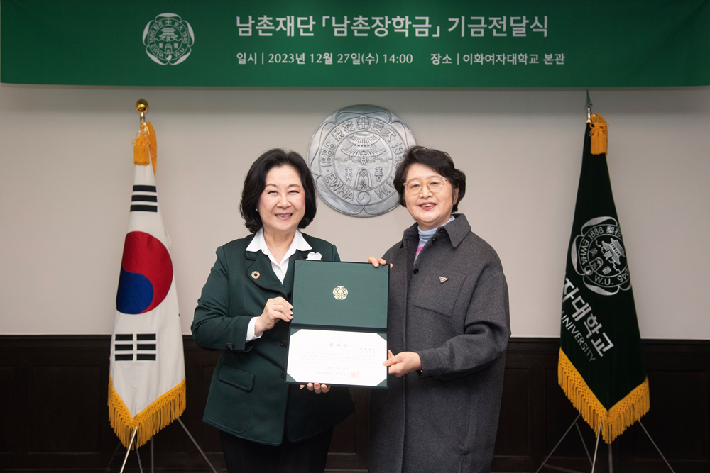 [대학저널 온종림 기자] 이화여자대학교가는 이주영 남촌재단 고문(영문 75졸)으로부터 ’남촌장학금’ 1억 원을 기부받았다.