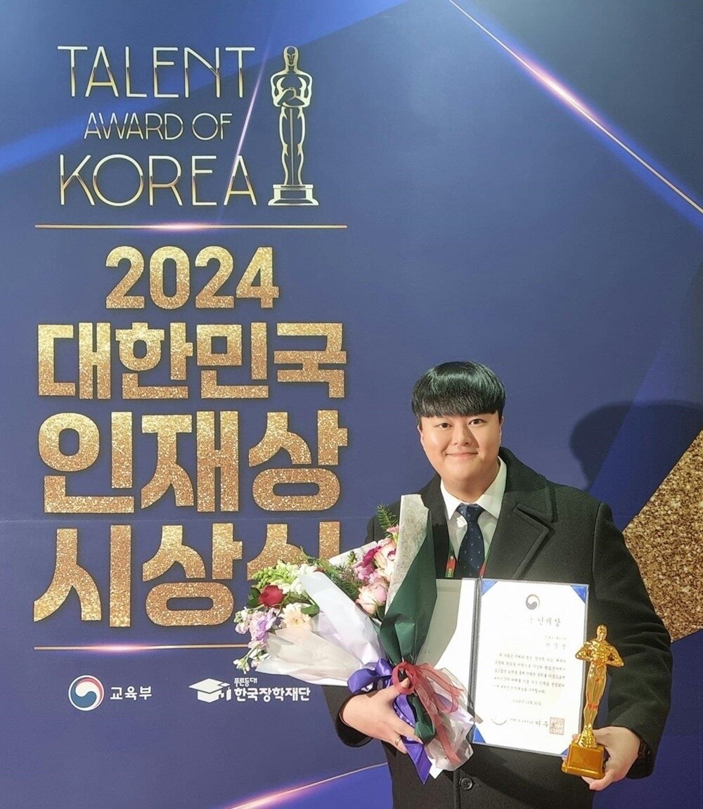 ‘대한민국 인재상’은 교육부와 한국장학재단이 주관해서 미래 사회를 이끌고 대한민국 주축으로 성장할 수 있는 인물을 발굴해 지원하는 사업으로, 대학·청년일반분야에서 수상했다.