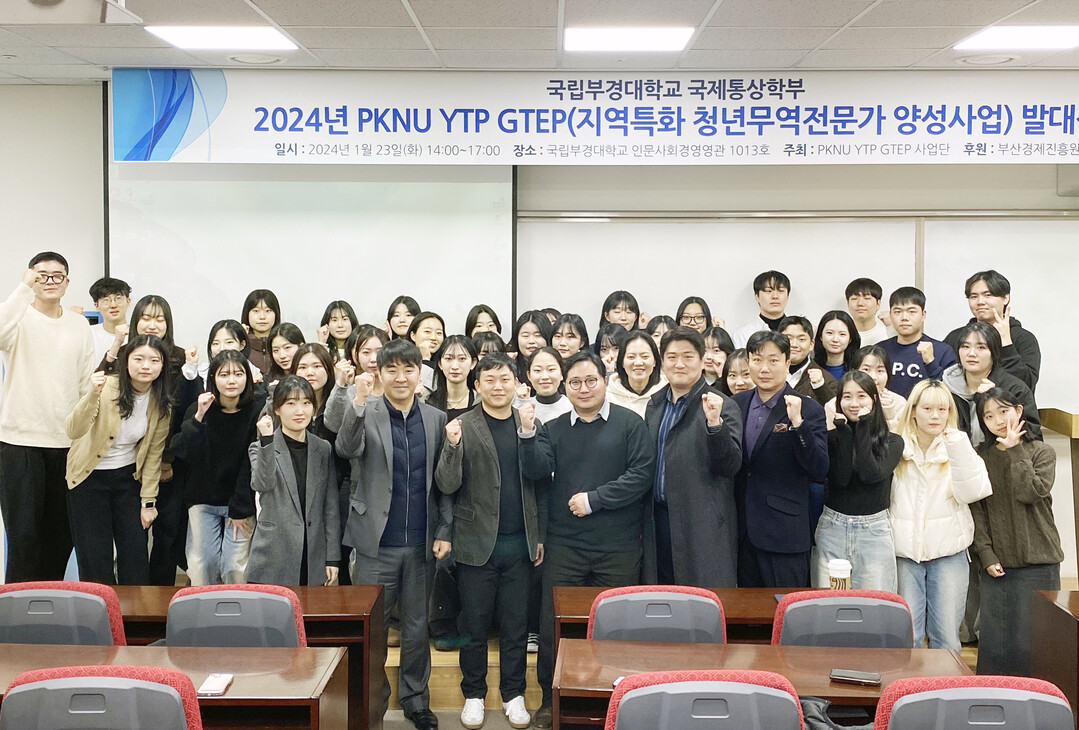 지난 23일 국립부경대 인문사회경영관 1013호에서 열린 발대식에는 배준영 국제통상학부장, 부산경제진흥원 손영석 통상지원팀장, GTEP 지도교수 등이 참여한 가운데 지난 12월 국립부경대 재학생 대상 공개모집을 통해 선발된 PKNU YTP GTEP 학생 40여 명이 참여했다.