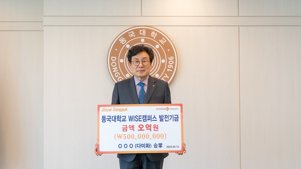 [대학저널 온종림 기자] 익명의 불교 신도가 최근 류완하 동국대 WISE캠퍼스 총장에게 5억원을 학교 발전기금으로 써 달라고 전달했다.