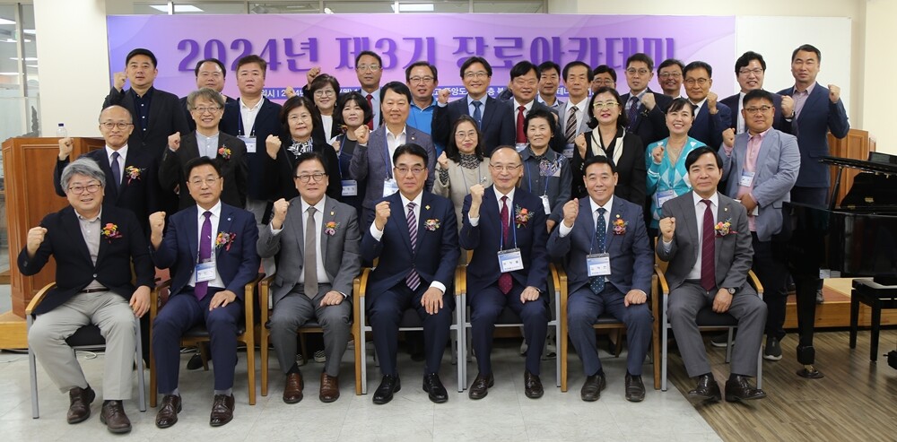 제3기 장로 아카데미 개강예배 및 입학식 참석자들이 단체 사진을 찍고 있다. 사진=한신대 제공 |