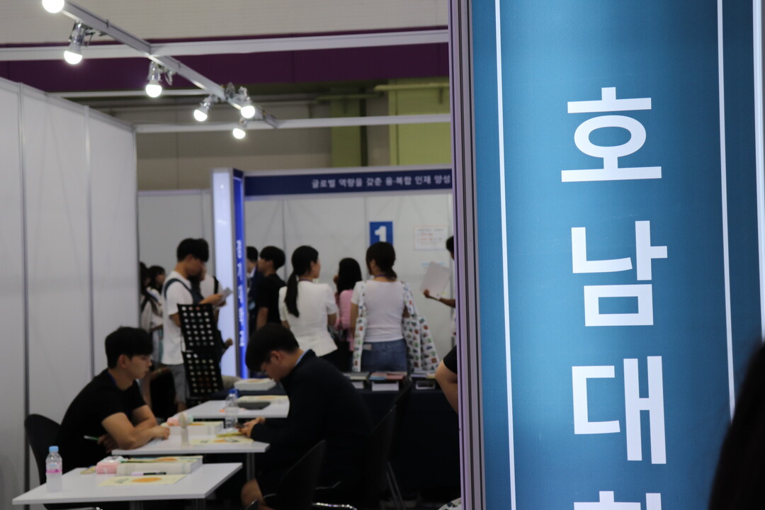 [대학저널 이선용 기자] 2025학년도 대입 수시모집을 앞두고 수험생과 학부모들이 입학 정보를 얻기 위해 발걸음을 재촉하고 있다. 이런 가운데 한국대학교육협의회는 수험생들의 궁금증 해소와 알찬 정보 제공을 위해 ‘2025학년도 수시 대학입학정보박람회’를 7월 25일부터 27일까지 3일간 서울 삼성동 코엑스에서 개최하고 있다. 2025학년도 수시 대학입학정보박람회는 지역 거점 국·공립대학, 수도권 대학 등 전국 149곳이 참가했으며, 수험생들은 대학별 입학전문가와 일대일 맞춤형 상담 진행할 수 있다. 사진은 호남대학교 부스에서 입시 상담을 받고 있는 수험생들의 모습이다.