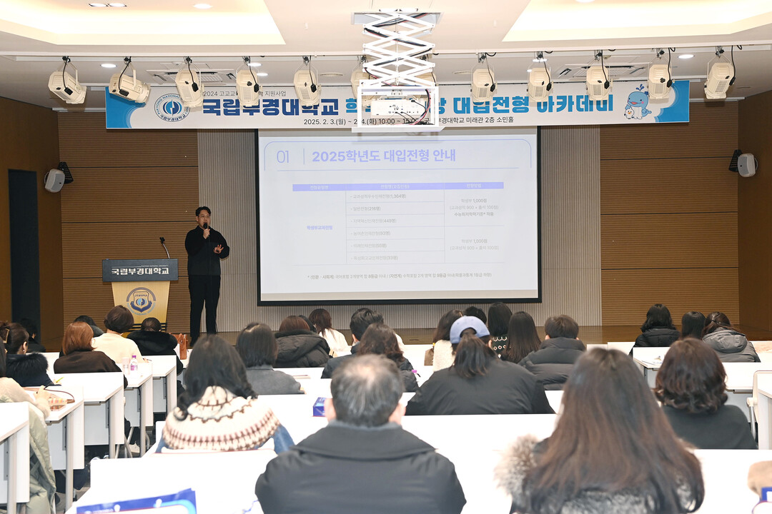 국립부경대 입학본부는 이번 행사를 통해 2025학년도 대입전형 운영과정과 입시 결과를 비롯해 올해 학생부종합전형 평가 방법 및 평가 사례 등을 안내했다.