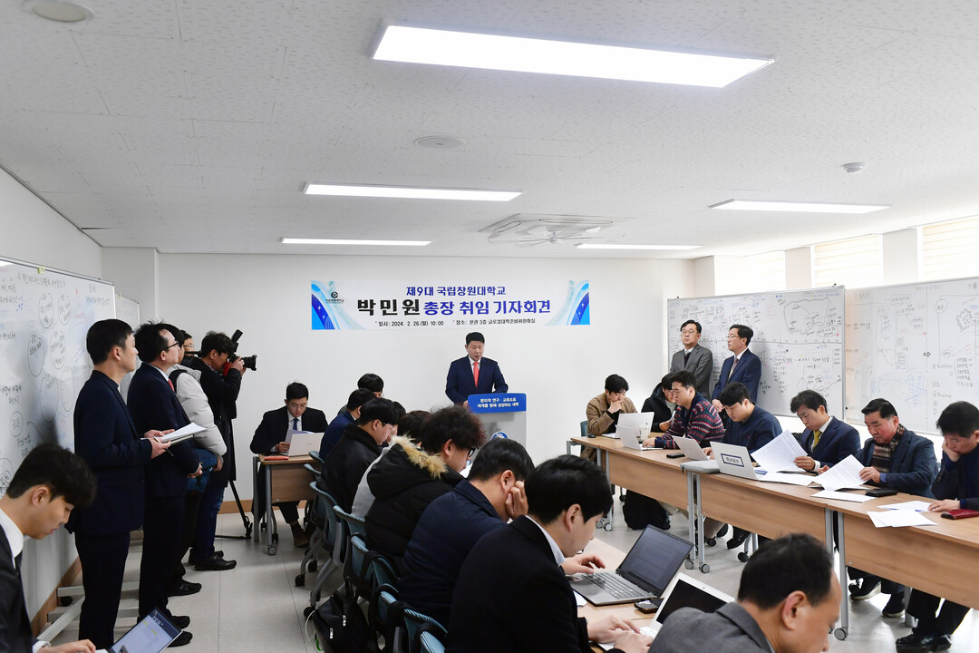 국립창원대 제9대 박민원 총장이 취임 기자회견을 갖고 있다. 사진=국립창원대 제공 |