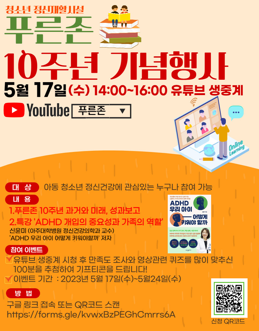 푸른존 10주년 기념행사는 유튜브를 통해 오후 2시부터 4시까지 실시간 라이브로 진행된다. 행사에 참석하기 위해서는 해당 시간에 맞춰 유튜브에서 ‘푸른존’을 검색한 후 입장하면 된다.