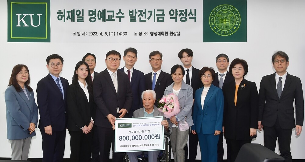 [대학저널 온종림 기자] 건국대학교는 사회과학대학 정치외교학과 허재일 명예교수가 건국대 발전기금으로 8억원 기부를 약정했다고 7일 밝혔다.