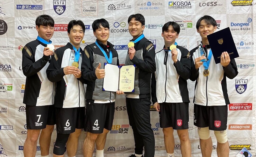 목원대학교 세팍타크로팀 선수들이 제20회 전국 학생 세팍타크로대회 및 제14회 세팍타크로 실업리그에서 우승한 뒤 기념촬영하고 있다. 사진=목원대 제공 |