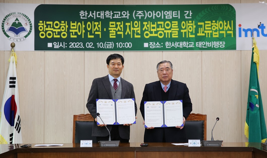 두 기관은 협약을 통해 ▲한서대의 조종사 교육·훈련에 IMT의 고정밀 3D 공간정보기반 유인비행체 시뮬레이터 연구성과물(모의비행훈련장치)의 활용 지원 ▲(주)IMT의 고용 창출을 위한 맞춤형 교육과 훈련 상호지원 ▲㈜IMT 사업장에 한서대 학생의 현장실습 지원 ▲양 기관의 공동 발전을 위한 사업 개발 등을 추진하기로 했다.