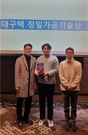 아울러 ‘2023 한국기계가공학회 추계학술대회’에서는 스마트제조융합협동과정 박사과정 손휘준 학생(제1저자)이 ‘Selection of additive manufacturing conditions for impeller blades through WAAM process’ 논문으로 와이어 DED 방식을 통한 고압 펌프용 Impeller pan 적층제조 후속공정 최적화를 규명하여 대구텍 정밀가공기술상, 기계공학부 한성빈 학생이 ‘컴퓨터 비전과 딥러닝 기술을 활용한 용접 외관부 기공 검출 시스템’ 논문으로 캡스톤디자인 부문 대상을 수상했다.