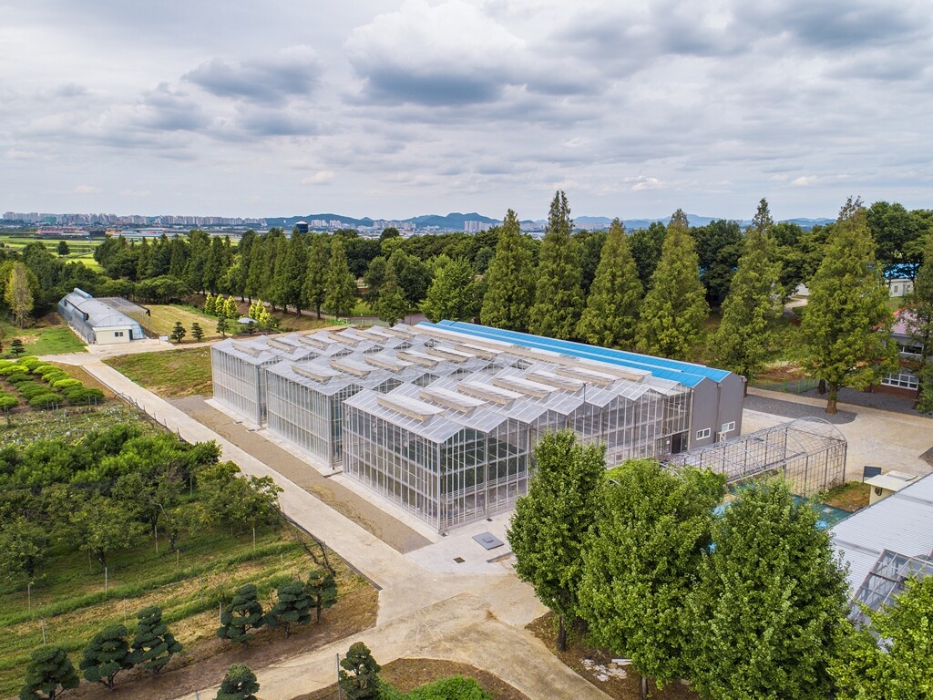 | 연암대 차세대농업기술센터 스마트팜(유리온실, 플라스틱온실, 수직농장) 전경. 사진=연암대 제공 |
