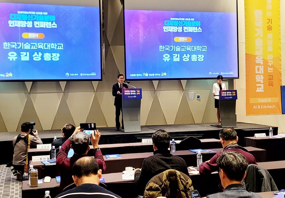 [대학저널 온종림 기자] 한국기술교육대학교가 고용노동부와 함께 2일 서울드래곤시티 한라홀에서 ‘평생직업능력개발 선도를 위한 2024년 디지털 신기술분야 인재 양성 컨퍼런스’를 개최했다.