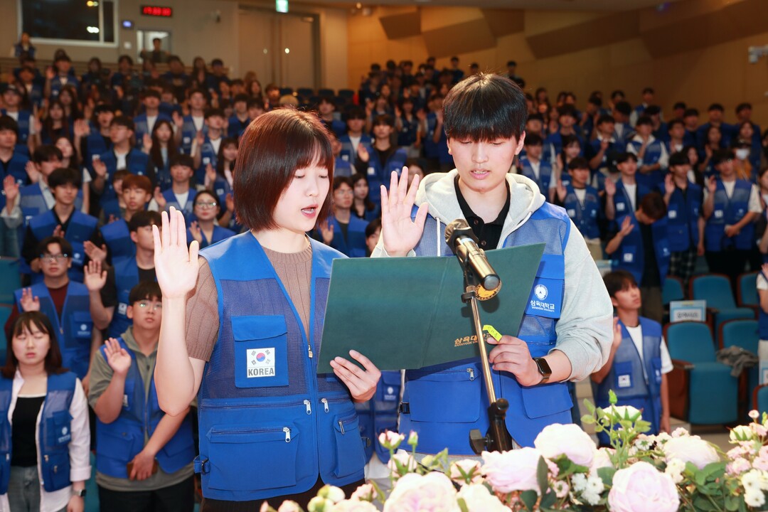 이날 발대식에서 김유정(물리치료학과 4학년), 김재현(컴퓨터공학과 4학년) 학생을 비롯한 모든 봉사대원은 “성실하게 봉사활동에 임하고, 학생의 본분에 충실하며, 학교와 국가의 명예를 높이겠다”는 내용의 선서문을 낭독하고 헌신적인 봉사를 다짐했다.