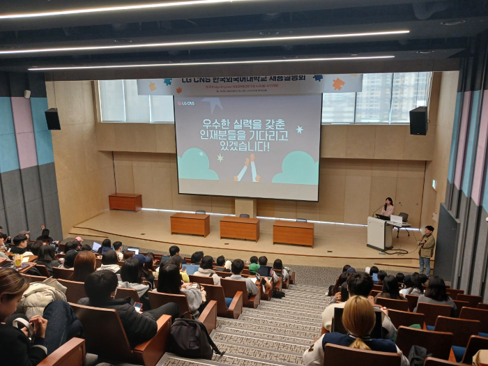 [대학저널 온종림 기자] 한국외국어대학교 대학일자리플러스본부가 지난 3월 27일 한국외대 도서관 휠라아쿠쉬네트홀에서 LG CNS 글로벌 현장실습 채용설명회를 개최했다.