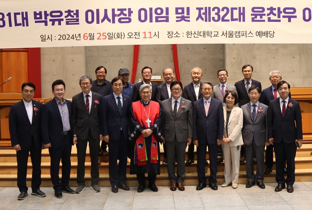 이어진 학교법인 한신학원 이사장 이·취임식에서는 제31대 박유철 前이사장에게 공로증이 수여됐으며, 제32대 윤찬우 신임 이사장의 취임서약과 취임선언 및 취임패 수여가 이어졌다.