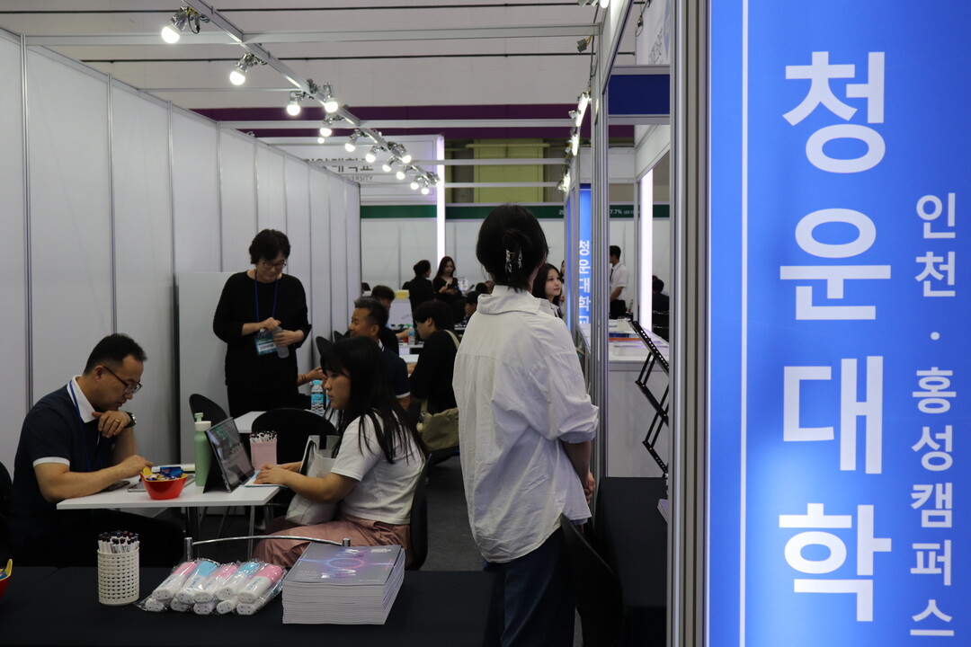 [대학저널 이선용 기자] 2025학년도 대입 수시모집을 앞두고 수험생과 학부모들이 입학 정보를 얻기 위해 발걸음을 재촉하고 있다. 이런 가운데 한국대학교육협의회는 수험생들의 궁금증 해소와 알찬 정보 제공을 위해 ‘2025학년도 수시 대학입학정보박람회’를 7월 25일부터 27일까지 3일간 서울 삼성동 코엑스에서 개최하고 있다. 2025학년도 수시 대학입학정보박람회는 지역 거점 국·공립대학, 수도권 대학 등 전국 149곳이 참가했으며, 수험생들은 대학별 입학전문가와 일대일 맞춤형 상담 진행할 수 있다. 사진은 청운대학교 부스에서 입시 상담을 받고 있는 수험생들의 모습이다.