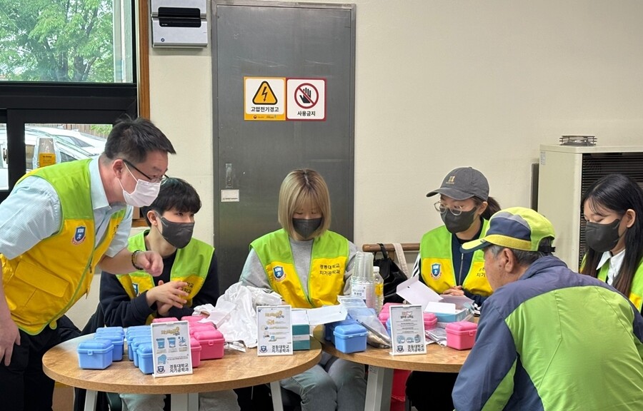 원주 가톨릭종합사회복지관에서 봉사하는 학생들. 사진=경동대 제공 |