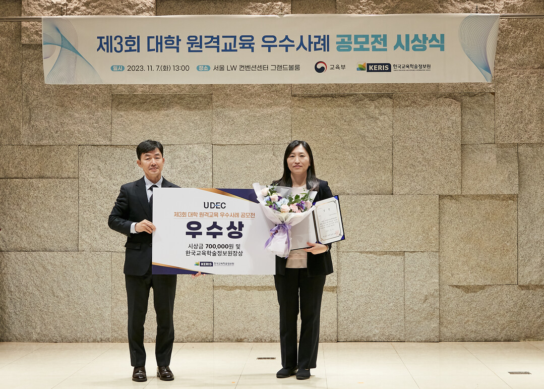올해 3회를 맞는 대학 원격교육 우수사례 공모전은 대학 원격교육 우수사례를 발굴하여 대학 원격교육 활성화와 질 제고를 위한 것으로, 지난 7월 신청서 접수를 시작으로 1차 서면평가 2차 발표평가를 통해서 선정되었고 11월 7일 서울 LW 컨벤션센터 그랜드볼룸에서 시상식을 열었다.