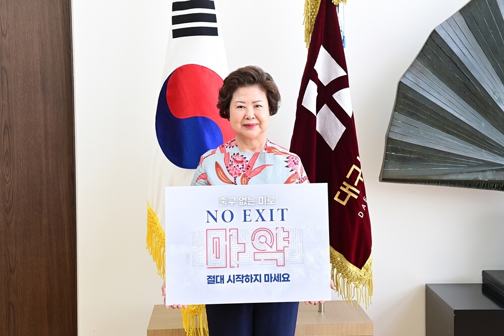[대학저널 온종림 기자] 남성희 대구보건대학교 총장이 15일 'NO EXIT, 출구가 없다' 마약퇴치 릴레이 캠페인에 동참했다.