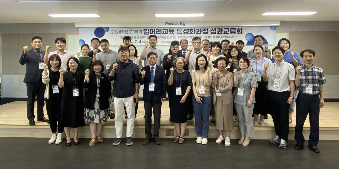 2024학년도 1학기 일머리교육특성화과정 성과교류회 참석자들이 기념촬영을 하고 있다. 사진=경남대 제공 |
