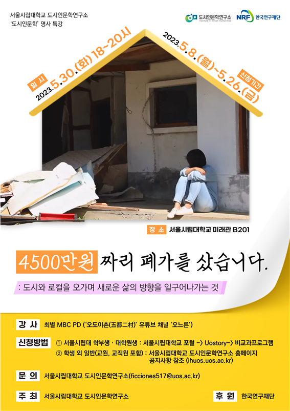 특강 관련 자세한 내용은 서울시립대 도시인문학연구소 홈페이지에서 통해 확인할 수 있고, 26일까지 참여 신청이 가능하다.
