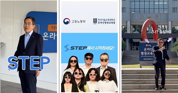 한기대 부속기관인 온라인평생교육원이 고용노동부와 함께 운영하는 스마트 직업훈련 플랫폼 ‘STEP’의 숏폼 홍보 영상 3편에 유 총장은 직원들과 함께 출연해 젊은 감성을 발산해 눈길을 끌었다. 온라인평생교육원은 이 숏폼을 인스타그램 등 SNS에 15일부터 19일까지 3일에 걸쳐 순차적으로 업로드하였다.