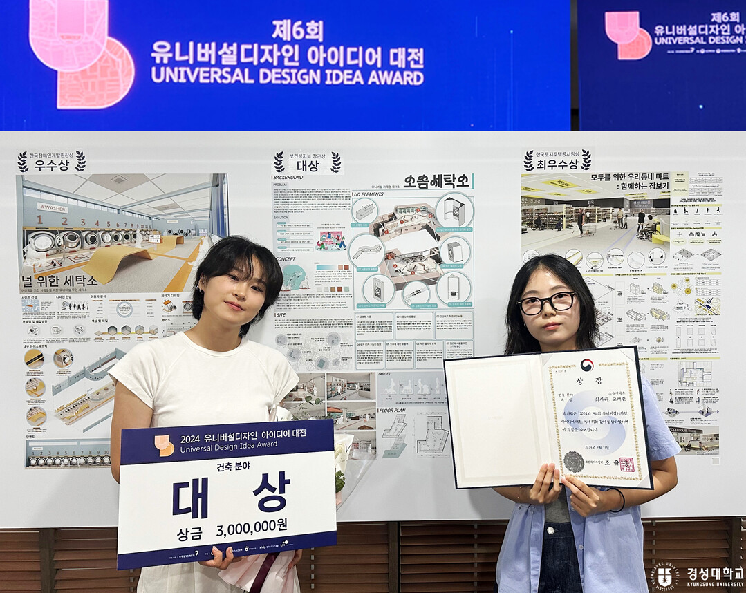 [대학저널 이선용 기자] 경성대학교 공과대학 실내건축학과 ‘소솜세탁소’팀(3학년: 최사라, 고채린, 지도교수: 실내건축학과 신선화)이 ‘제6회 유니버설디자인 아이디어 대전’에 참가해 건축 분야 대상(보건복지부장관상)을 수상했다.
