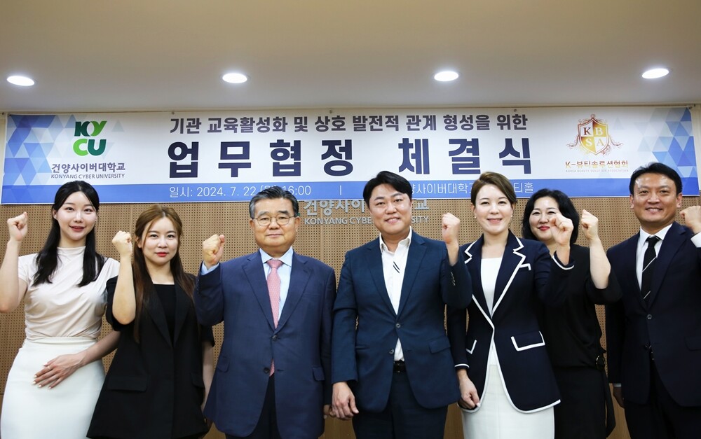 [대학저널 온종림 기자] 건양사이버대학교가 22일 대학 2층 어니스티홀에서 K-뷰티솔루션협회와 지역 내 K-뷰티 토탈미용인 양성을 위한 상호 업무 협정을 체결했다.