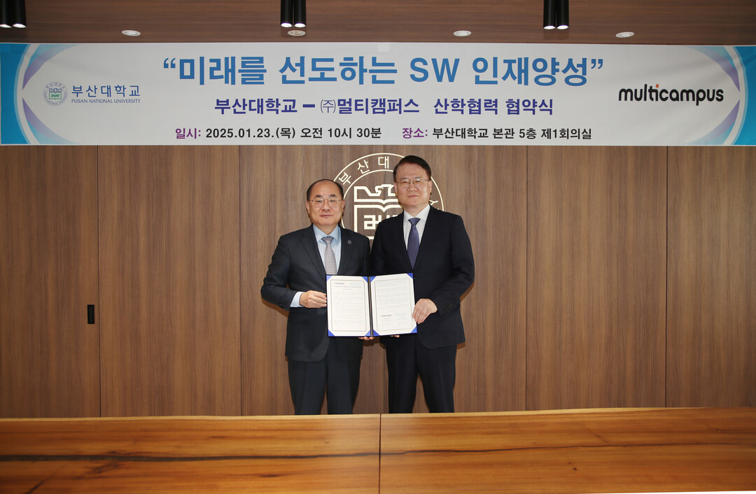 [대학저널 이선용 기자] 부산대학교와 ㈜멀티캠퍼스는 지역 및 대학 특화산업을 고려한 소프트웨어(SW) 인재 양성 사업 발굴과 미래교육을 선도하는 에듀테크 얼라이언스 구축을 위한 산학협력 MoU 체결식을 23일 오전 교내 대학본부 5층 제1회의실에서 개최했다고 23일 밝혔다.
