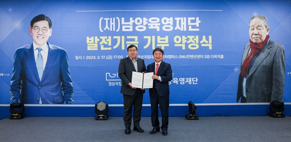 경상국립대는 남양육영재단이 이같이 발전기금을 기부해 지난 17일 가좌캠퍼스에서 ‘남양육영재단 발전기금 기부 약정식’을 했다고 20일 밝혔다.