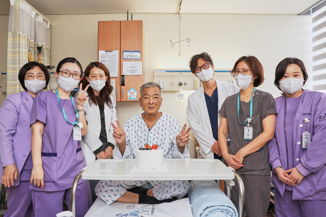 강 씨는 “최근 심근경색발생과 함께 심부전으로 고비를 맞아 힘든 상황 속에 우연하게도 중앙대병원과 인연이 되어 수술 후 건강을 회복해 편하게 숨 쉬고 활동할 수 있게 됐다”며 “병원에서 생일까지 맞이하게 돼 새롭게 태어난 기분이라 기쁘고 중앙대병원 의료진과 관계가 분께 감사하다”고 말했다.
