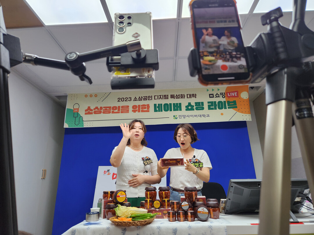 소상공인 디지털 특성화 대학 라이브 커머스 실습 장면. 사진=건양사이버대 제공 |