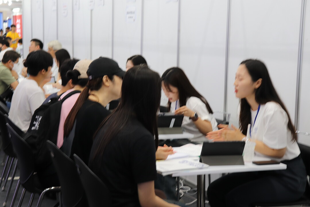 2025학년도 수시 대학입학정보박람회는 지역 거점 국·공립대학, 수도권 대학 등 전국 149곳이 참가했으며, 수험생들은 대학별 입학전문가와 일대일 맞춤형 상담 진행할 수 있다. 사진은 서울시립대학교 부스에서 입시 상담을 받고 있는 수험생들의 모습이다.
