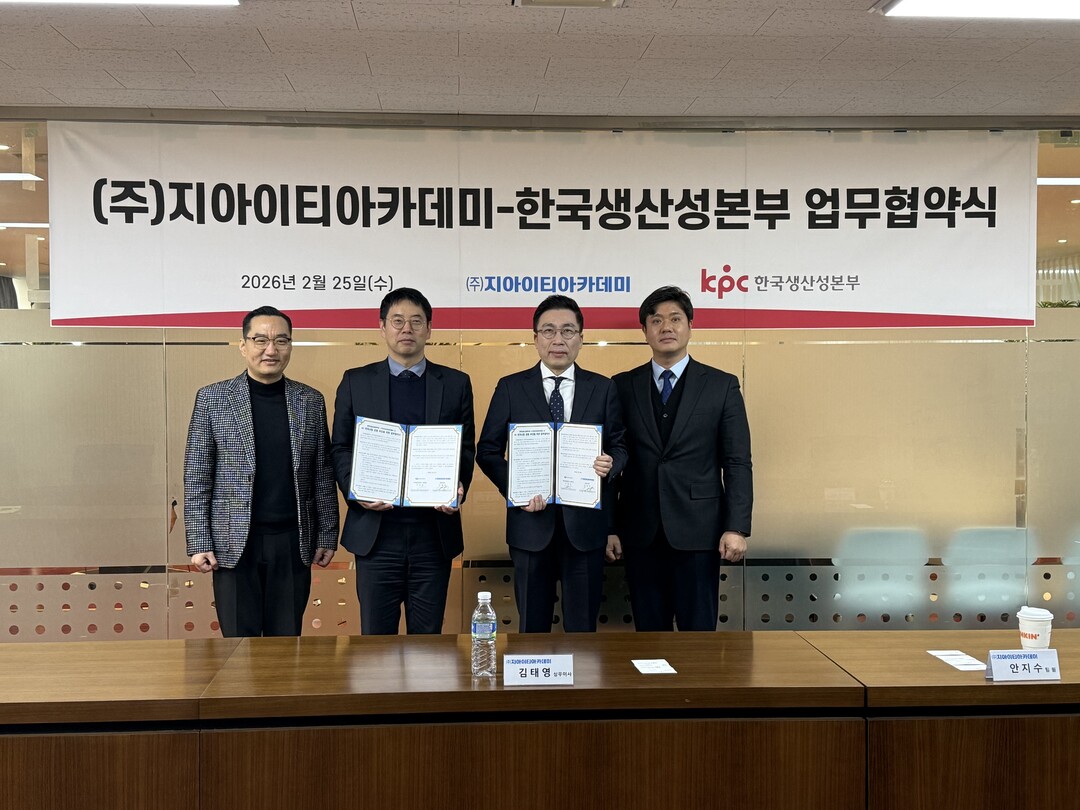 그린컴퓨터아카데미(㈜지아이티아카데미)와 한국생산성본부(KPC)가 지난 2월 25일, AI 자격사업 공동 추진을 위한 업무협약(MOU)을 체결했다. 이번 협약은 생성형 AI 확산에 따른 산업 현장의 인공지능 활용 역량 수요 증가에 대응하고, 자격과 교육을 연계한 체계적인 AI 인재 양성 생태계를 구축하기 위해 마련됐다.
