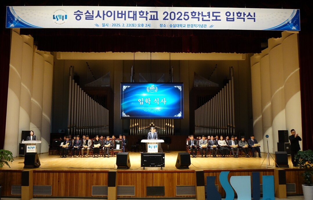오후 2시부터는 2025학년도 신·편입생 2,523명을 위한 입학식이 진행됐다. 이진희 입학홍보처장의 사회로 이유경 이러닝교육처장의 기도, 이정재 기획처장의 대학소개, 한헌수 총장의 입학 허가 선서, 신입생 대표 유통서비스학과 김규현 학생의 신입생 입학 선서, 숭실사이버대 합창단의 축가 순으로 진행됐다. 공식 식순 이후에는 총학생회 소개가 이어졌으며, 이후 학과별 오리엔테이션을통해 교수와 선후배 간의 만남의 시간을 갖기도 했다.