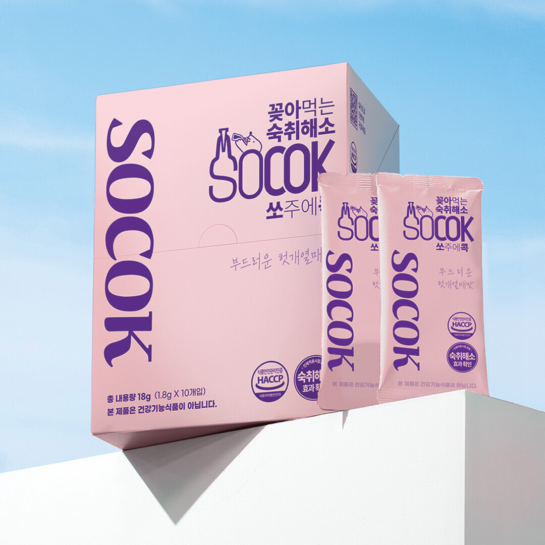 이러한 시장 흐름에 발맞춰 숙취해소제 브랜드 쏘콕(SOCOK)이 최근 패키지 리뉴얼을 단행했다. 쏘콕은 기존 디자인에서 한 단계 나아가, 부드러운 핑크 컬러를 중심으로 한 트렌디한 패키지를 새롭게 선보이며 브랜드 이미지를 재정비했다.