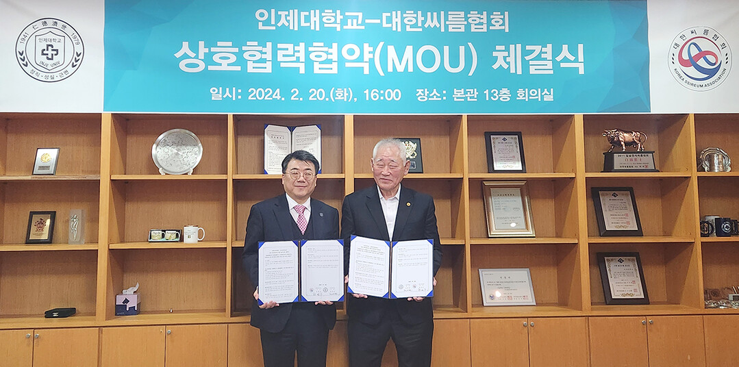 [대학저널 이선용 기자] 인제대학교와 대한씨름협회가 20일 인제대 본관 13층 회의실에서 민속씨름의 세계화와 발전을 위한 상호협력 협약을 체결했다.
