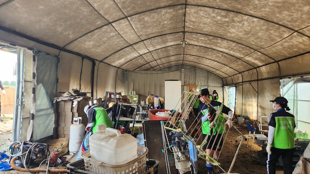 4일 건양대에 따르면 이 대학 학생과 교직원들은 건양대 사회봉사센터와 논산시 자원봉사센터 주최로 진행된 봉사활동에서 논산시 성동면과 부적면 일대 수해 농가를 방문해 시설하우스와 농작물 정리 등 수해복구 지원에 힘을 보탰다.