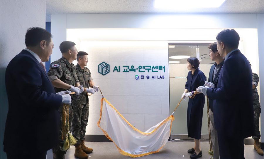 지난 12일, 육군 제51보병사단에서 열린 ‘AI 교육·연구센터’ 개소식에서 참석자들이 제막하고 있다. 사진=제51보병사단 제공 |