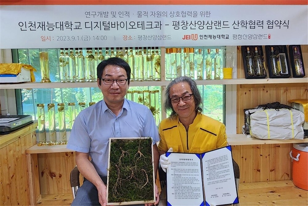 [대학저널 온종림 기자] 인천재능대가 지난 1일 평창산양삼랜드와 산삼 연구개발을 위한 산학협력 업무협약을 체결했다.