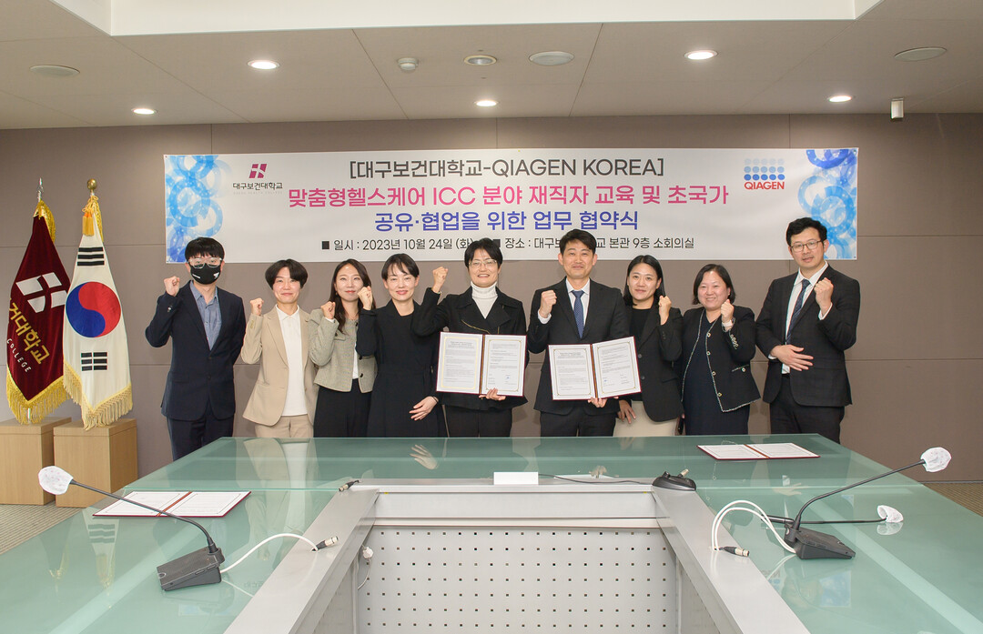 [대학저널 이선용 기자] 대구보건대학교와 QIAGEN KOREA가 24일 본관 9층 소회의실에서 맞춤형헬스케어 분야 재직자교육과 공유·협업을 위한 MOU를 체결했다.
