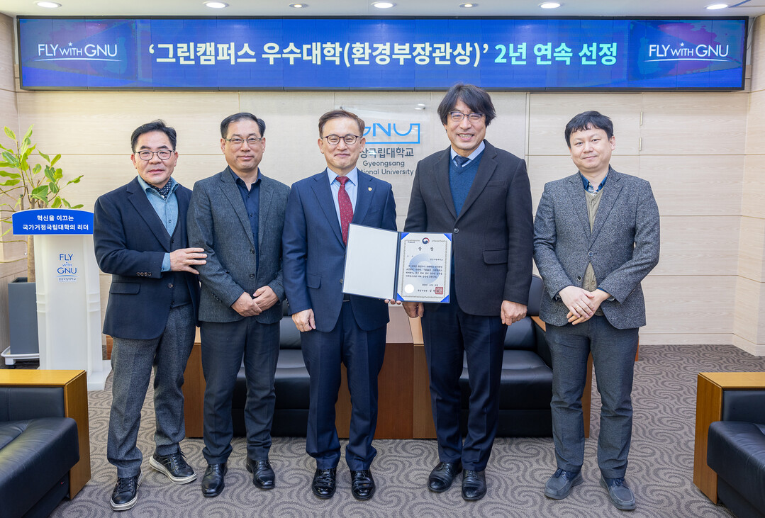 [대학저널 이선용 기자] 경상국립대학교가 환경부와 한국환경보전원이 주관하는 ‘그린캠퍼스 조성사업’에서 2년 연속 우수대학으로 선정되어 환경부장관상을 수상했다.