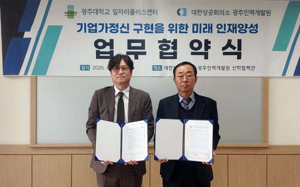 [대학저널 이선용 기자] 광주대학교 대학일자리플러스센터는 1월 15일 대한상공회의소 광주인력개발원과 미래인재 양성 및 교육혁신을 도모하기 위한 업무협약을 체결했다고 16일 밝혔다.