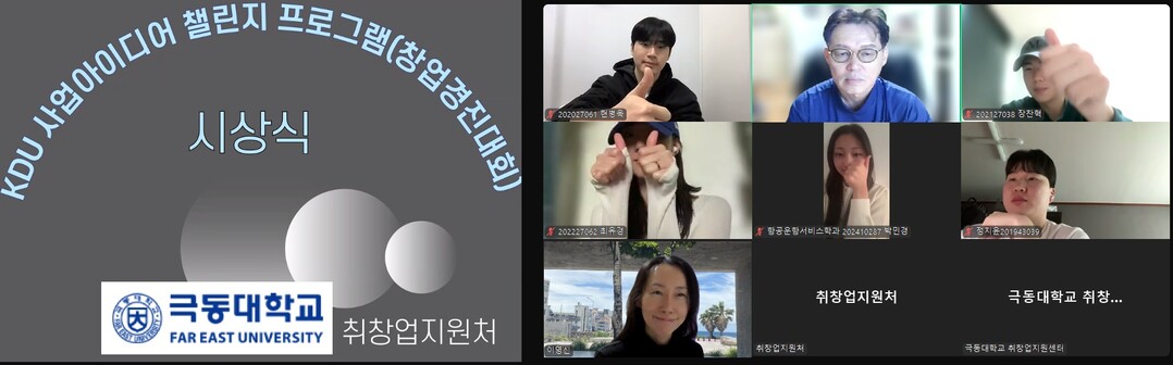 남의석 취창업지원처장은 “교양 교과목과 취창업지원처의 체계적인 교육이 학생들의 창의력을 발휘할 수 있는 기틀이 됐다”며 “극동대는 앞으로도 지역 청년들에게까지 창업 역량 개발의 기회를 제공해 지역 사회와 함께 성장해 나갈 것”이라고 밝혔다.