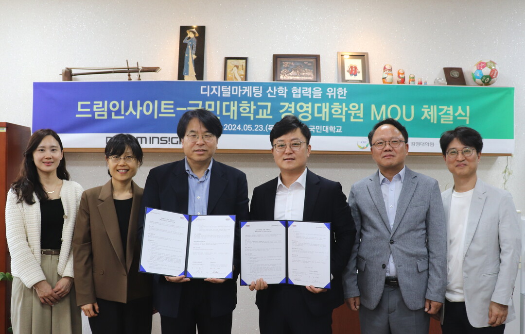 [대학저널 이선용 기자] 국민대학교 경영대학원이 지난 5월 24일 디지털 마케팅 그룹 드림인사이트와 디지털 마케팅 분야 교육 프로그램 개발과 산학협력을 위한 업무 협약을 체결했다.