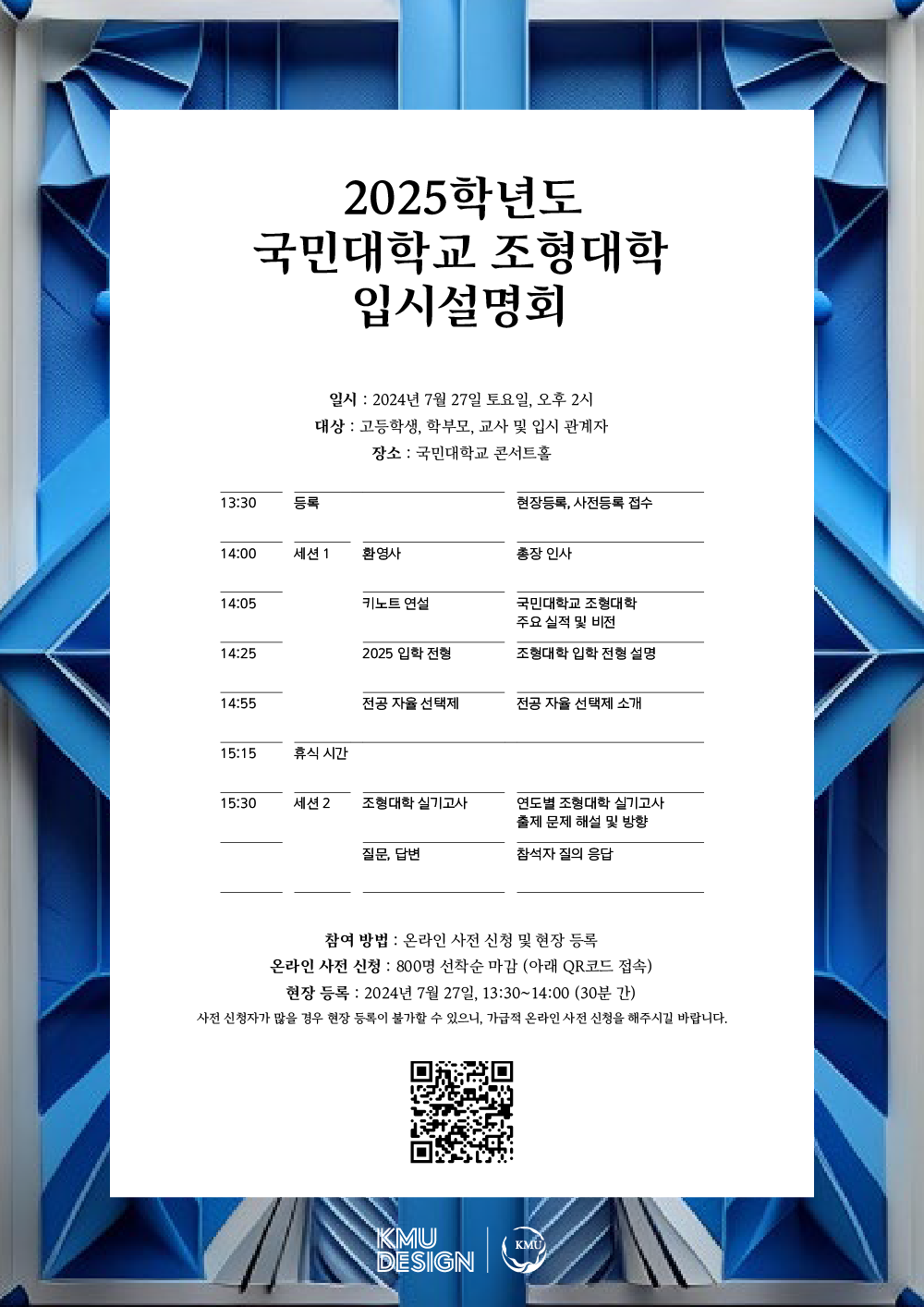 국민대 조형대학 2025 입시설명회 포스터. |